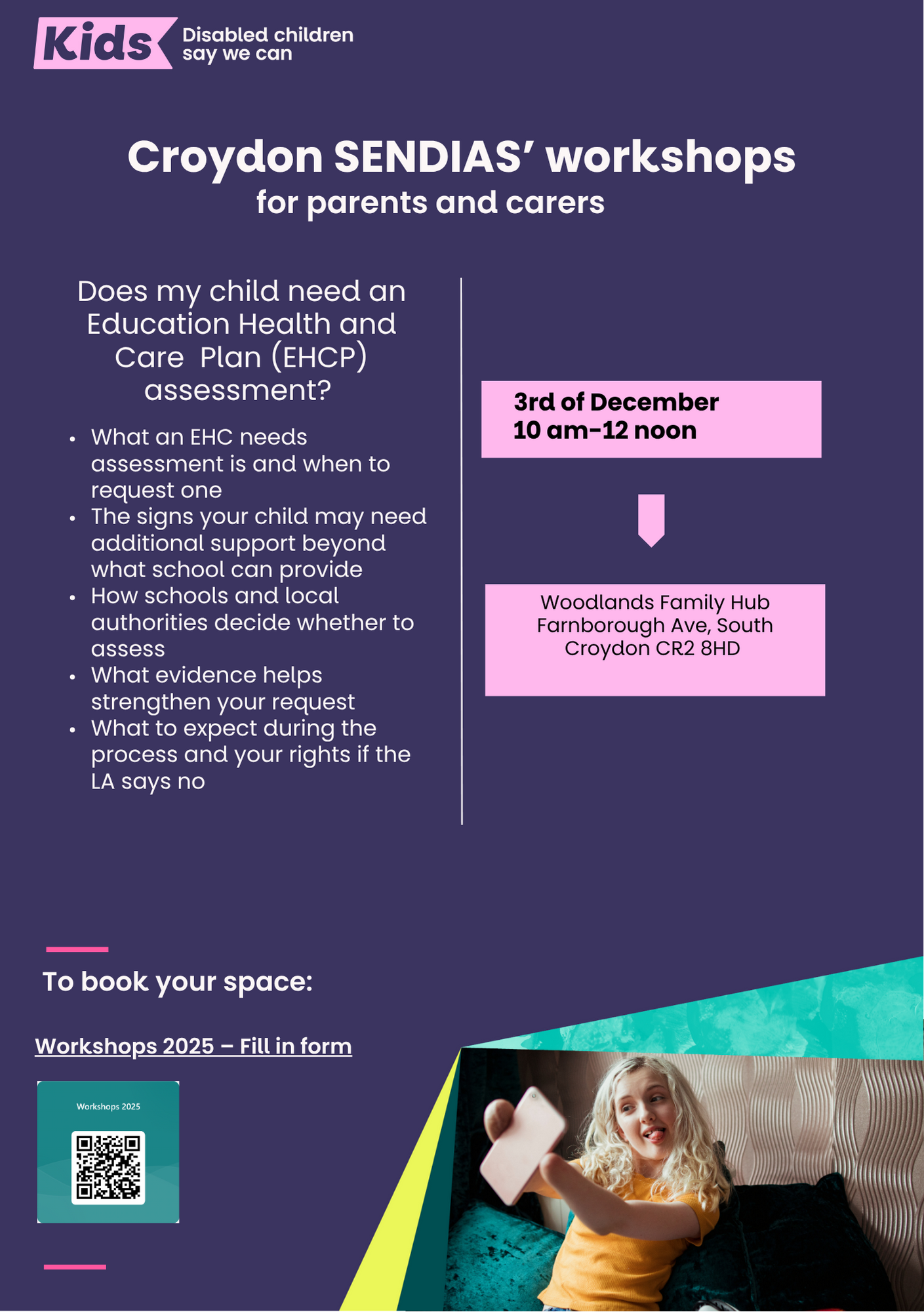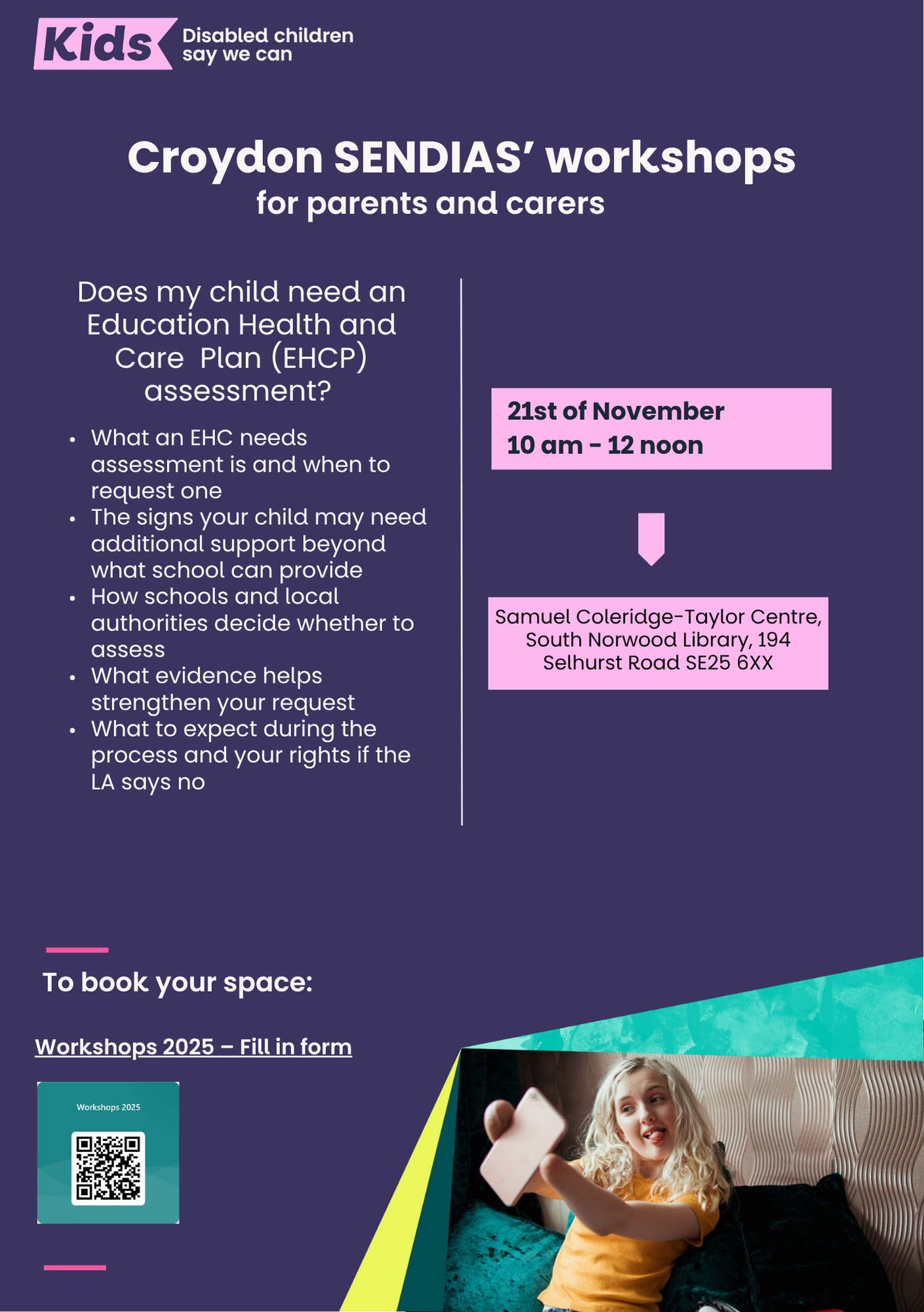You can contact us using the form below or email us at croydon@kids.org.uk.